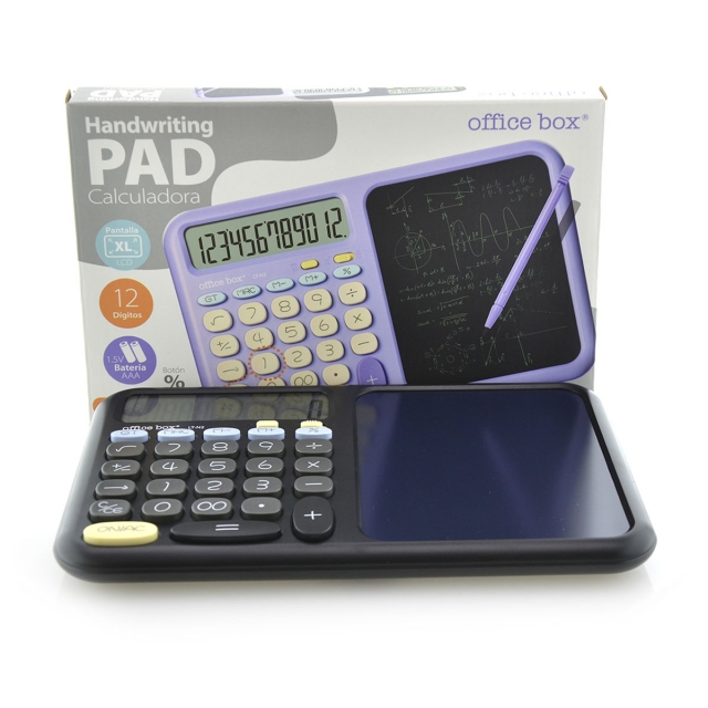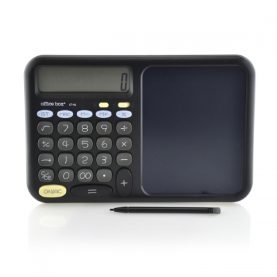 Model LT-N2 pad de scris 2-în-1 cu calculator și tabletă digitală – Office Box LT-N2 combină un calculator cu o suprafață de scriere LCD reutilizabilă de 10,5 x 13 cm, stylus detașabil pe partea din spate, buton de blocare/deblocare și ștergere rapidă pentru notițe temporare fără hârtie, disponibil în mov și negru.